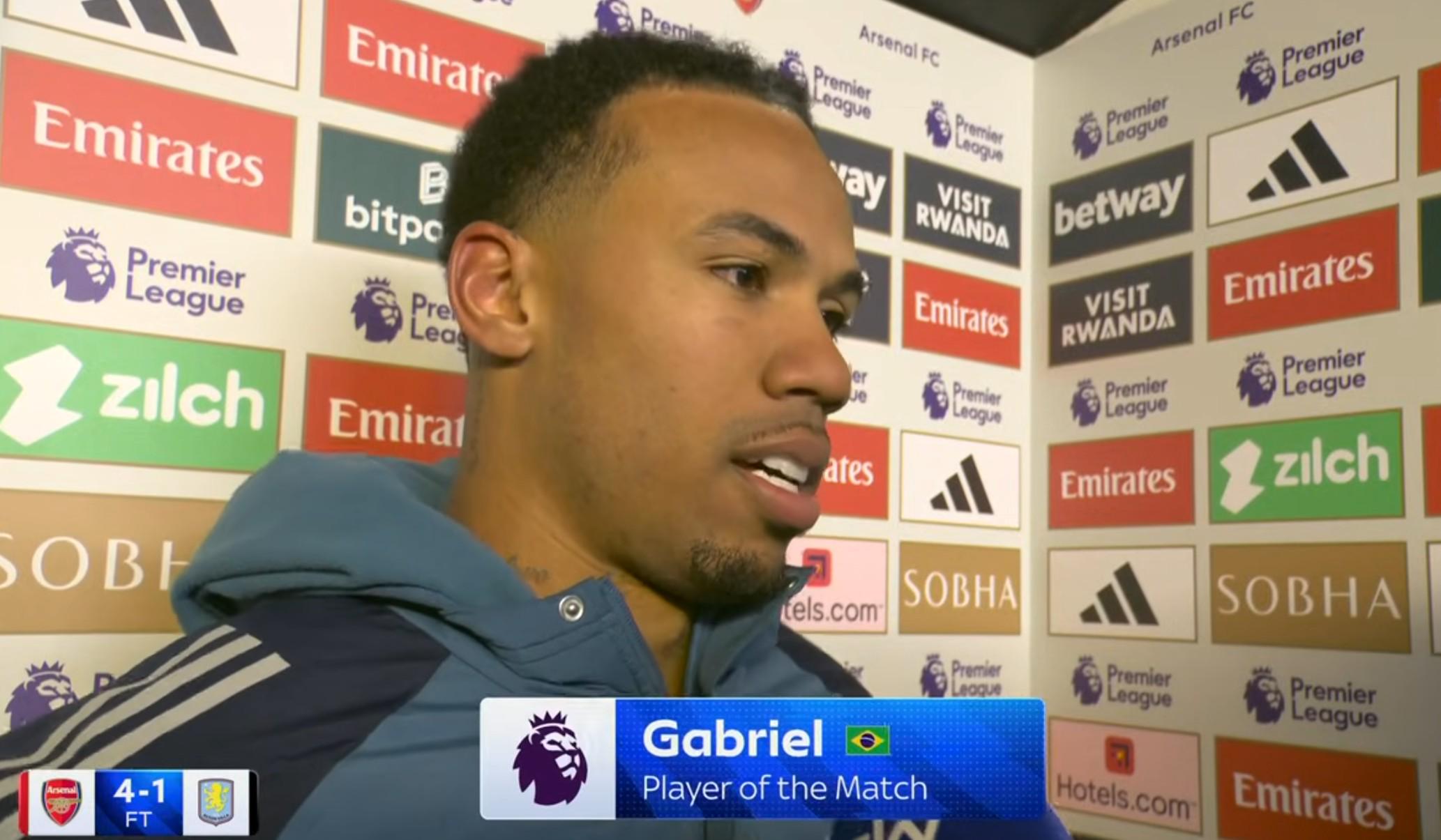 在主场4-1战胜维拉的赛后线下手机股票配资论坛,本场比赛打入一球的阿森纳后卫加布里埃尔接受了天空体育的采访。
